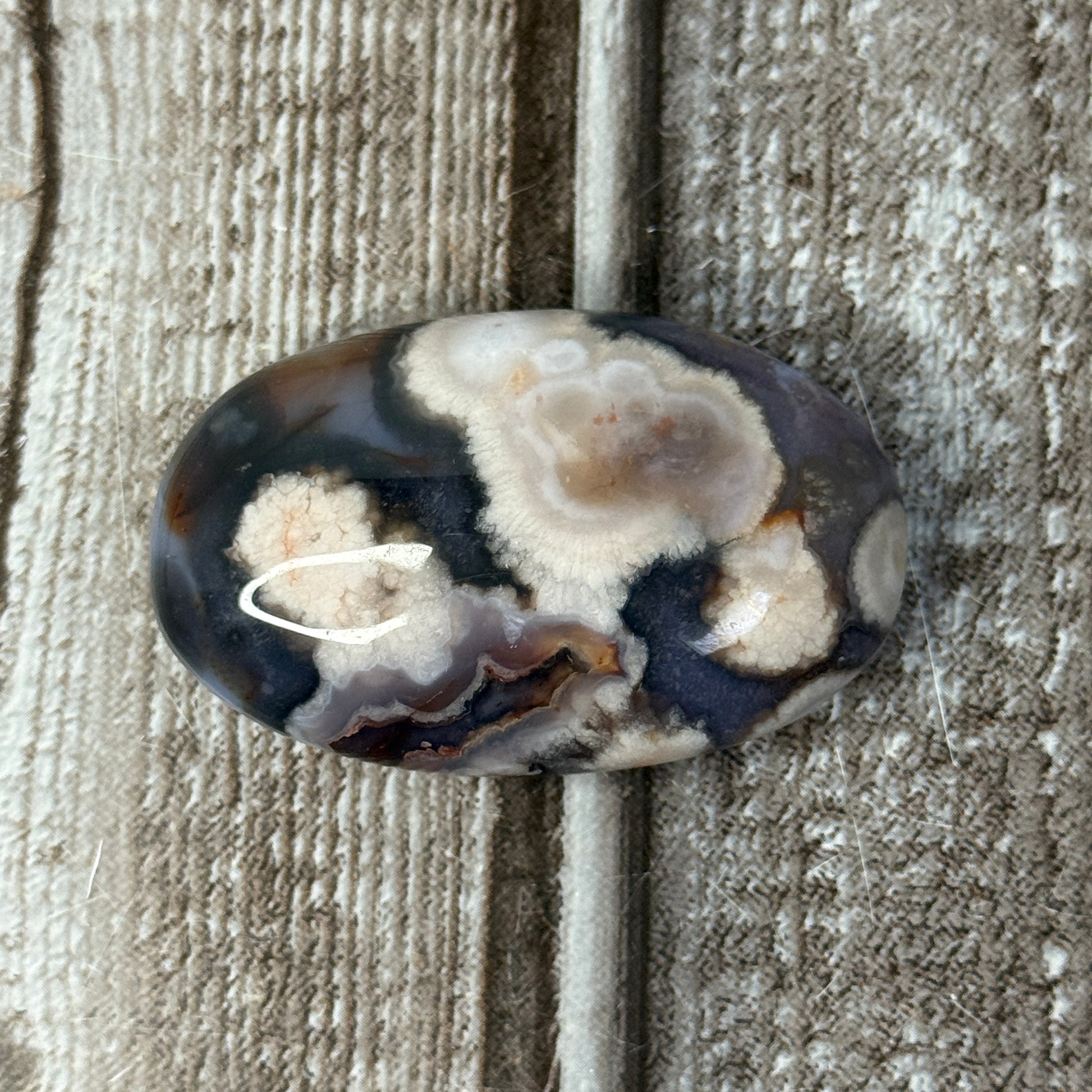 Discover the charm of the Blue Flower Agate Palmstone! With its dreamy blue shades and pretty flower-like patterns, this smooth stone is your perfect pocket-sized buddy for calming vibes and good energy. Hold it tight during your day to feel a little more balanced and a lot more joyful. Whether you’re new to crystals or a seasoned collector, this playful palmstone adds a splash of serenity and fun to your collection.