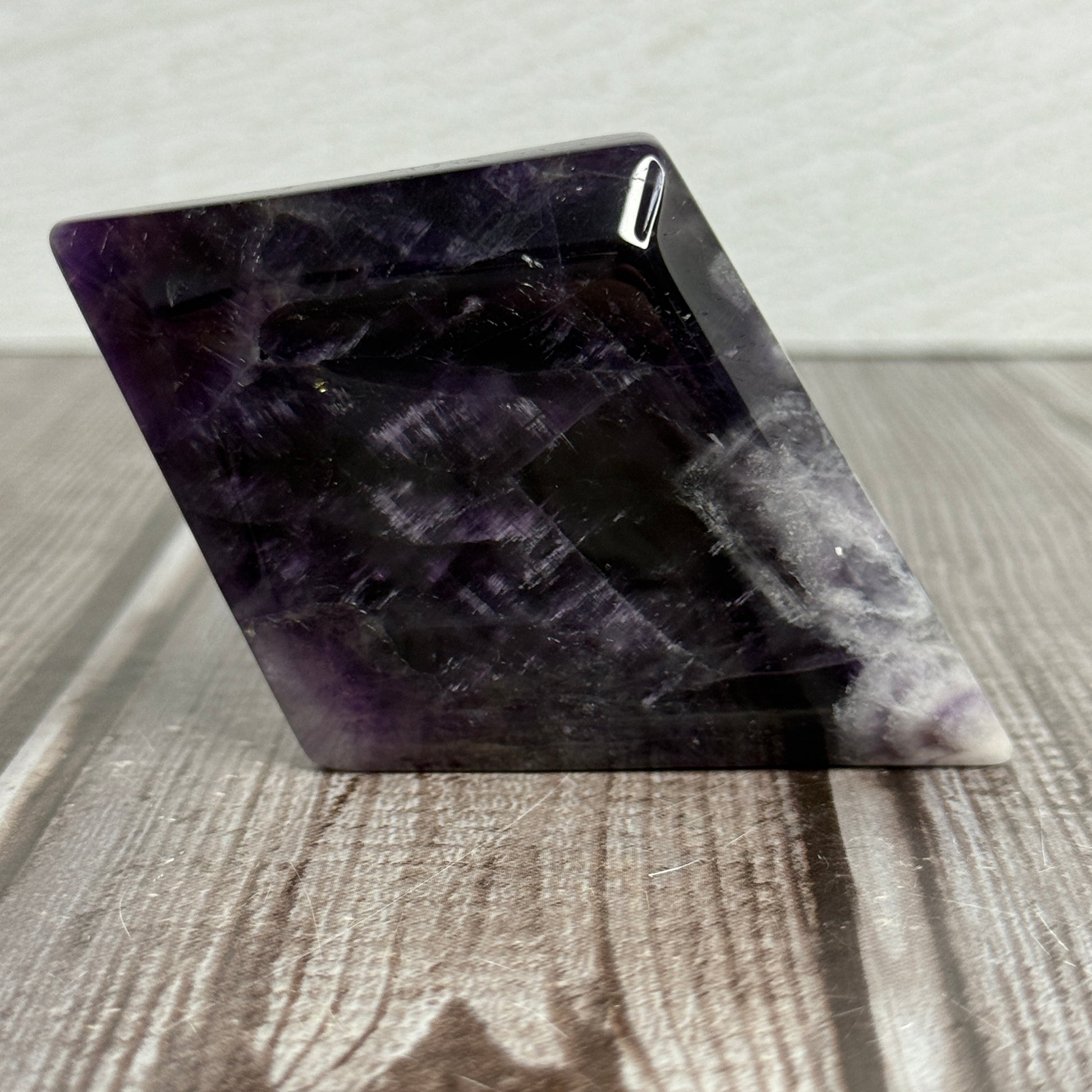 Chevron Amethyst Diamond combines striking geometric banding with the calming properties amethyst is known for. This distinctive variety features bold purple and white chevron patterns that create a mesmerizing visual effect. Each piece showcases natural variations in color intensity and pattern formation, making it truly one-of-a-kind. Ideal for collectors, crystal enthusiasts, and those seeking a statement piece that merges aesthetic beauty with mineral significance. Perfect for display, meditation practice, or as a thoughtful gift for the discerning crystal lover.