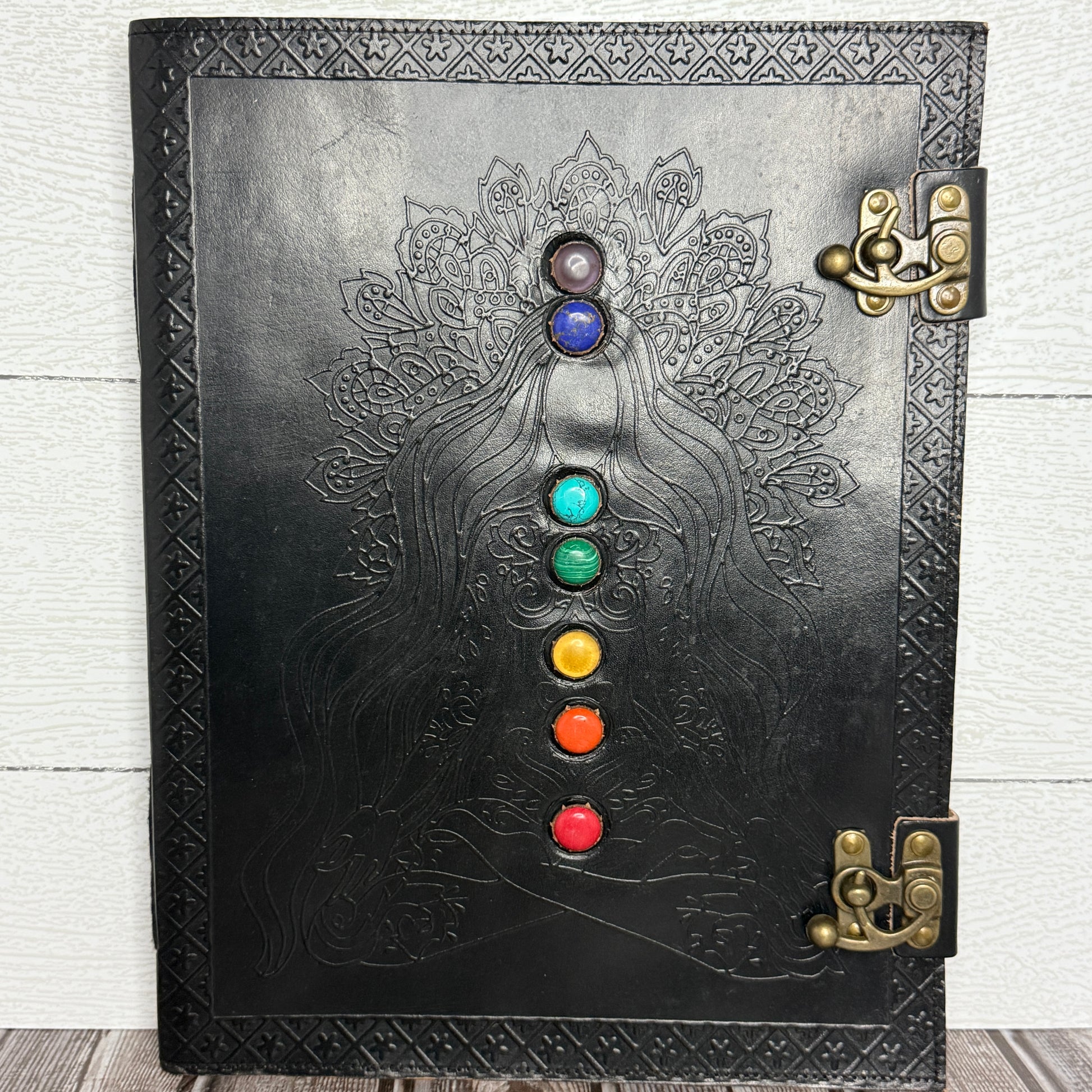 Embossed Black 7 Chakras Genuine Leather 200 Page Journal 10" x 13"