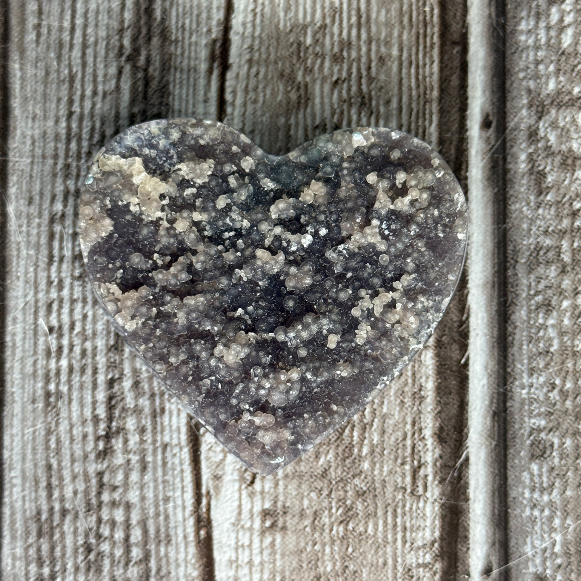 Unleash your heart's desires with the Grape Agate Heart! Its metaphysical properties are believed to bring inner peace and balance, helping you manifest your dreams. Let its vibrant purple hues and heart shape guide you on your journey. (Note: may induce feelings of joy and awe.)
