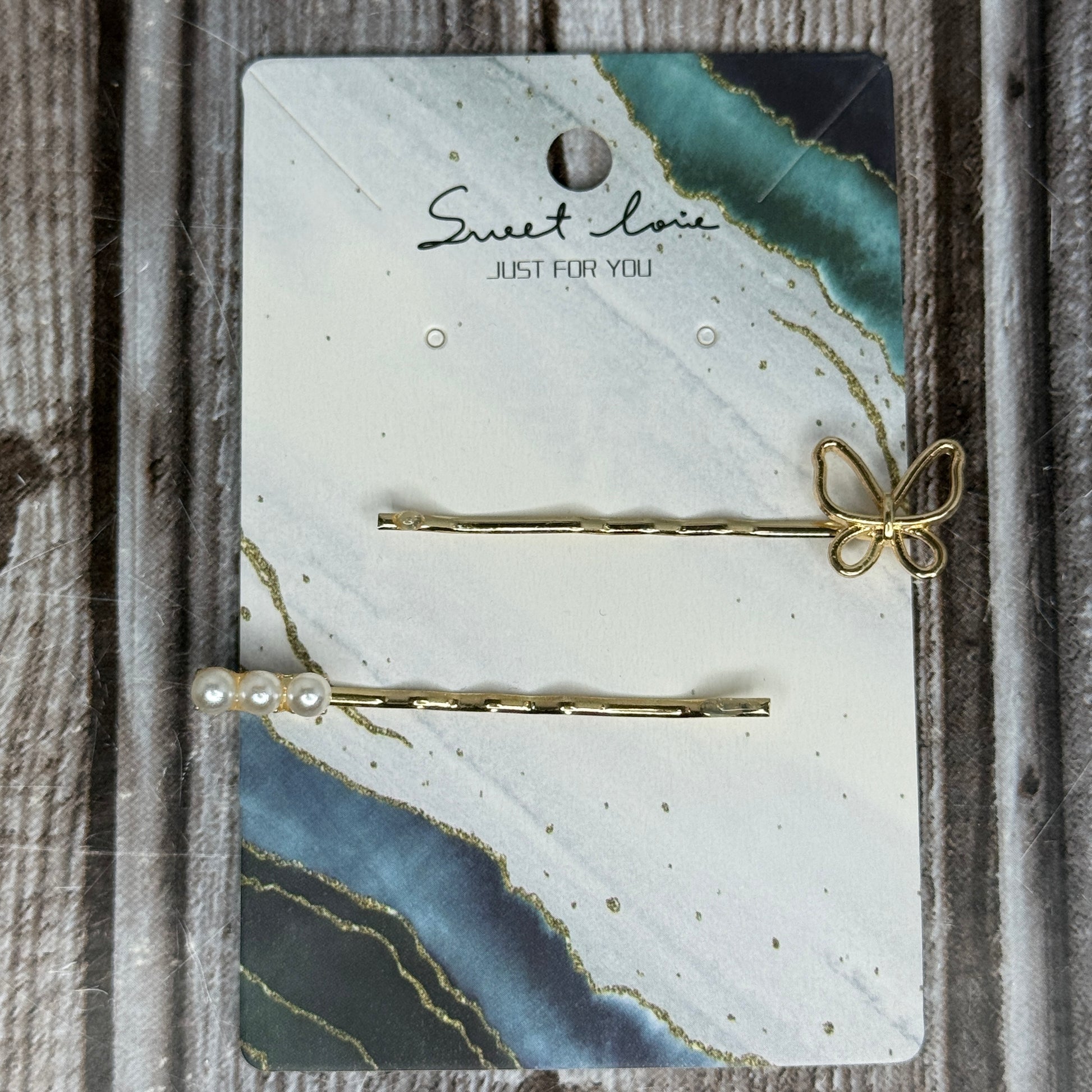 Beautiful gold sparkly hair bobby pins or barrettes for your hair.