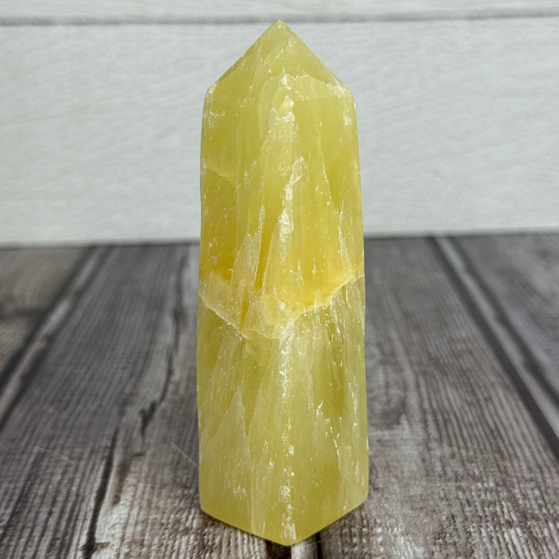 Elevate your space with the refined energy of the Lemon Calcite Tower. Its smooth, radiant hues bring clarity and positivity, enhancing focus and emotional balance. Expertly shaped, this tower serves as both a striking decorative piece and a subtle tool for promoting mental clarity and uplifting your environment. Ideal for those seeking an elegant fusion of natural beauty and purposeful well-being.