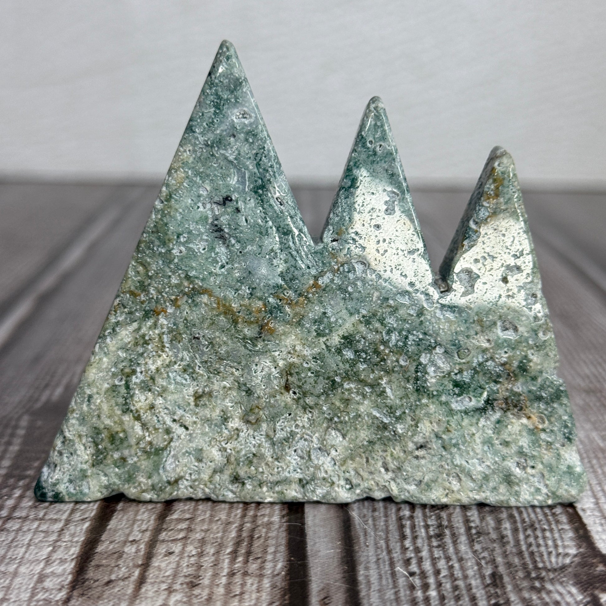 Elevate your spiritual journey with Moss Agate Mountains! This powerful metaphysical stone offers grounding and protection, while promoting growth and abundance in all aspects of life. Experience the calming and inspiring energy of these breathtaking mountains.