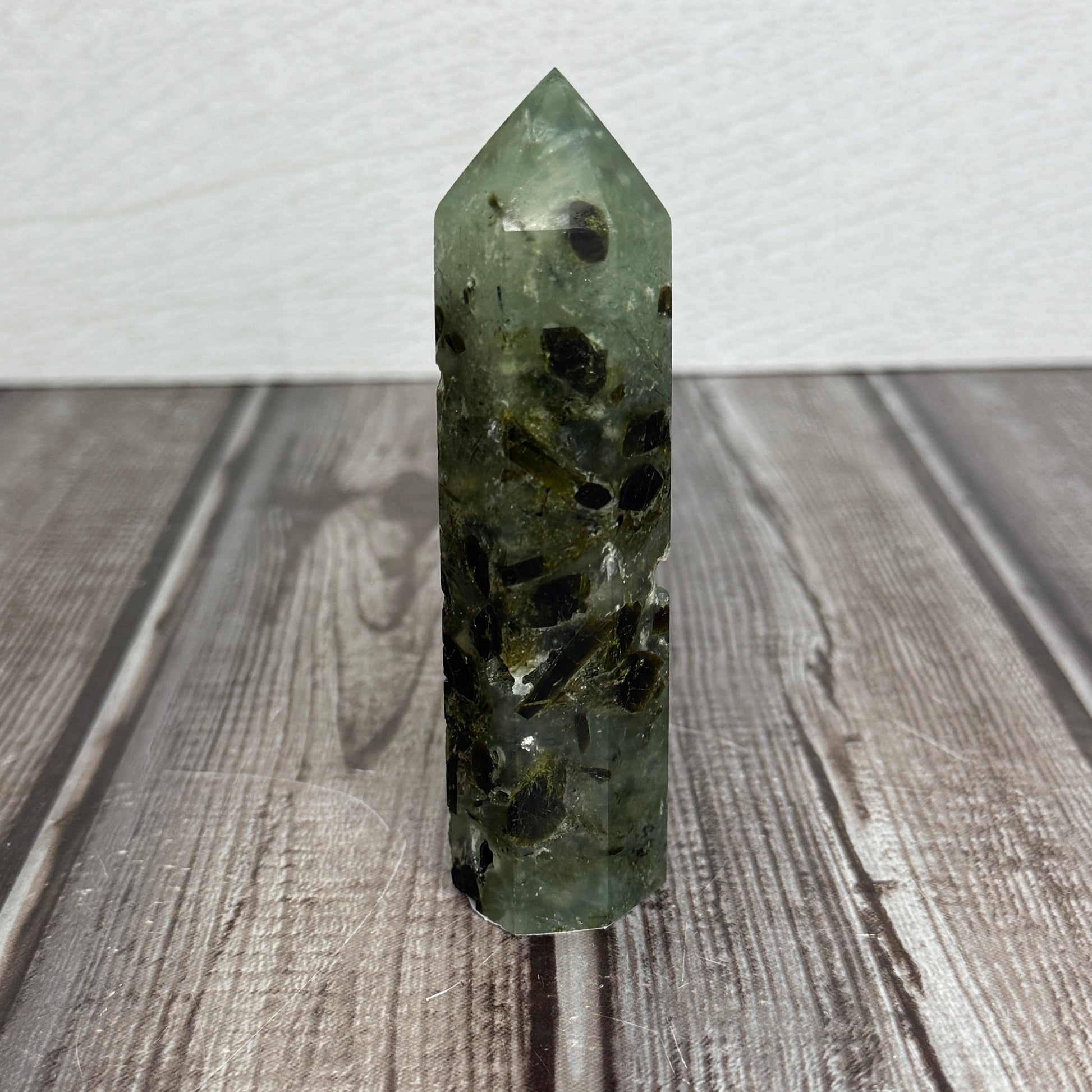Elevate your space with the bold energy of the Prehnite Tower. Known for its powerful healing properties, this striking crystal tower channels clarity and transformation, making it a daring centerpiece for any collection. Its vibrant green hues inspire growth and renewal, empowering you to embrace change with confidence. Perfect for those ready to unlock new potential and ignite their inner strength.