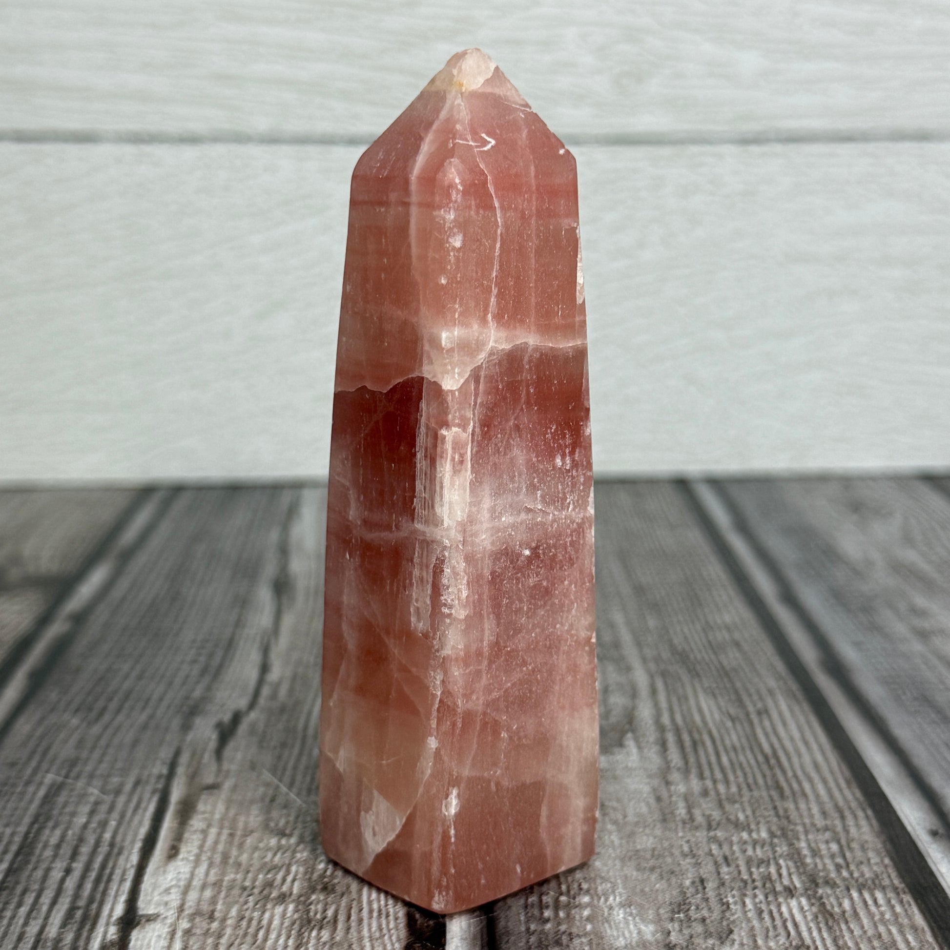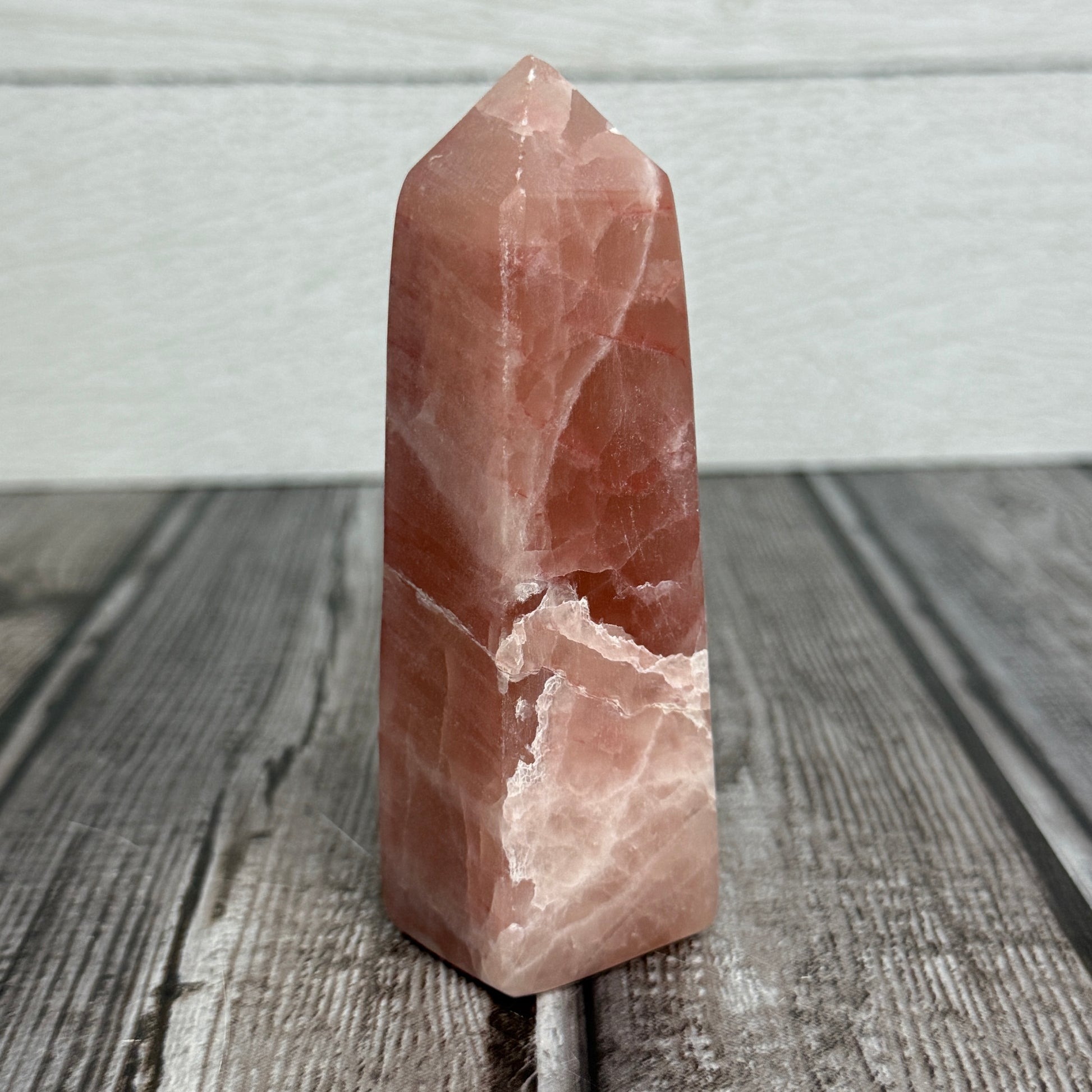 Brighten your space with the gentle energy of this Rose Calcite Tower. Its smooth, pink hues invite calm and self-love, making it a charming companion for your desk or meditation nook. Whether you’re looking to boost your mood or add a splash of rosy glow to your room, this crystal tower has you covered with its magical, heart-opening vibes.