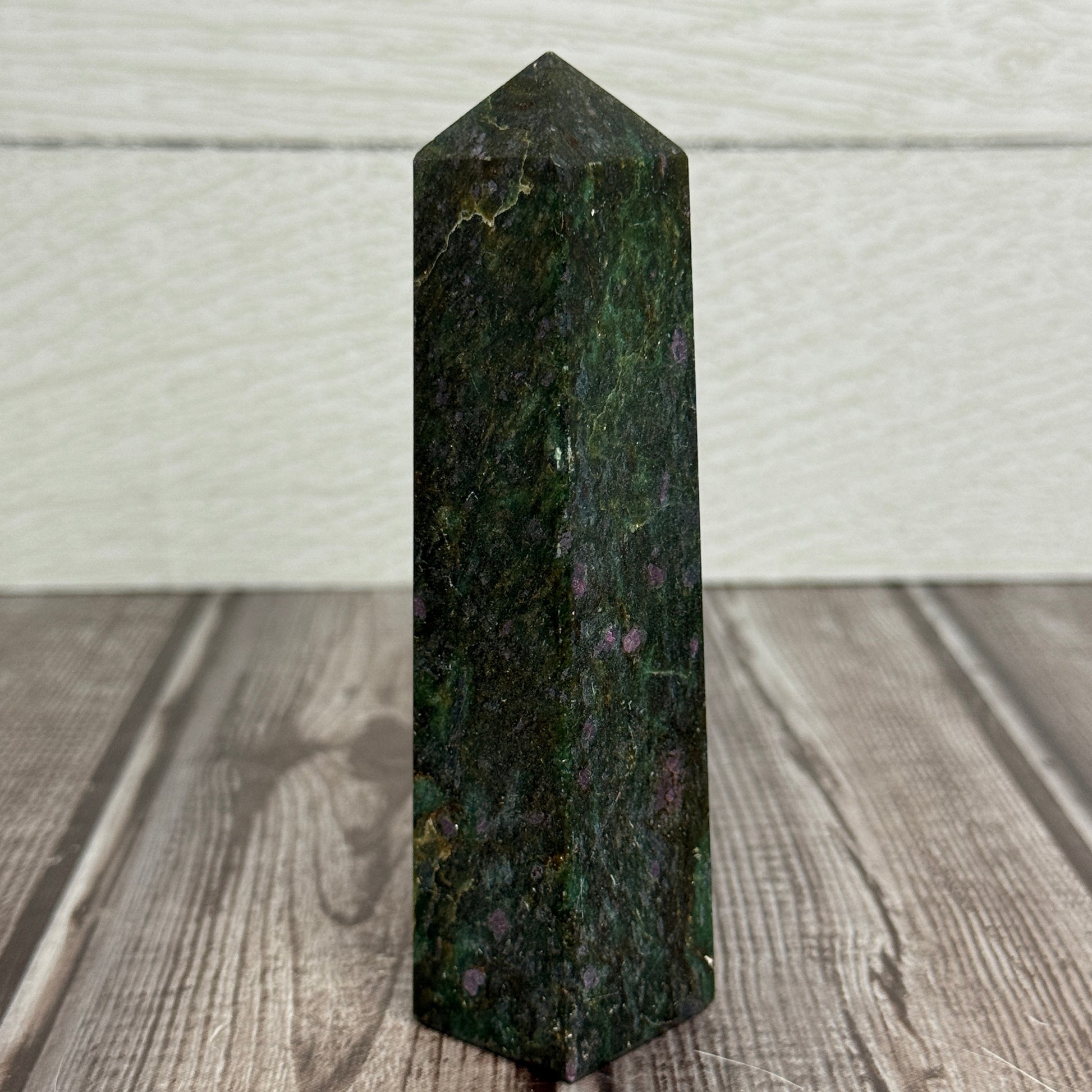 Discover the striking Ruby in Zoisite Tower, where vibrant red ruby boldly contrast with deep green zoisite. This powerful combination energizes your space with dynamic beauty and a daring spirit, perfect for those who embrace bold transformation and vibrant energy. Elevate your environment with this unique crystal tower that commands attention and inspires fearless living. The ruby in this is UV reactive as well!