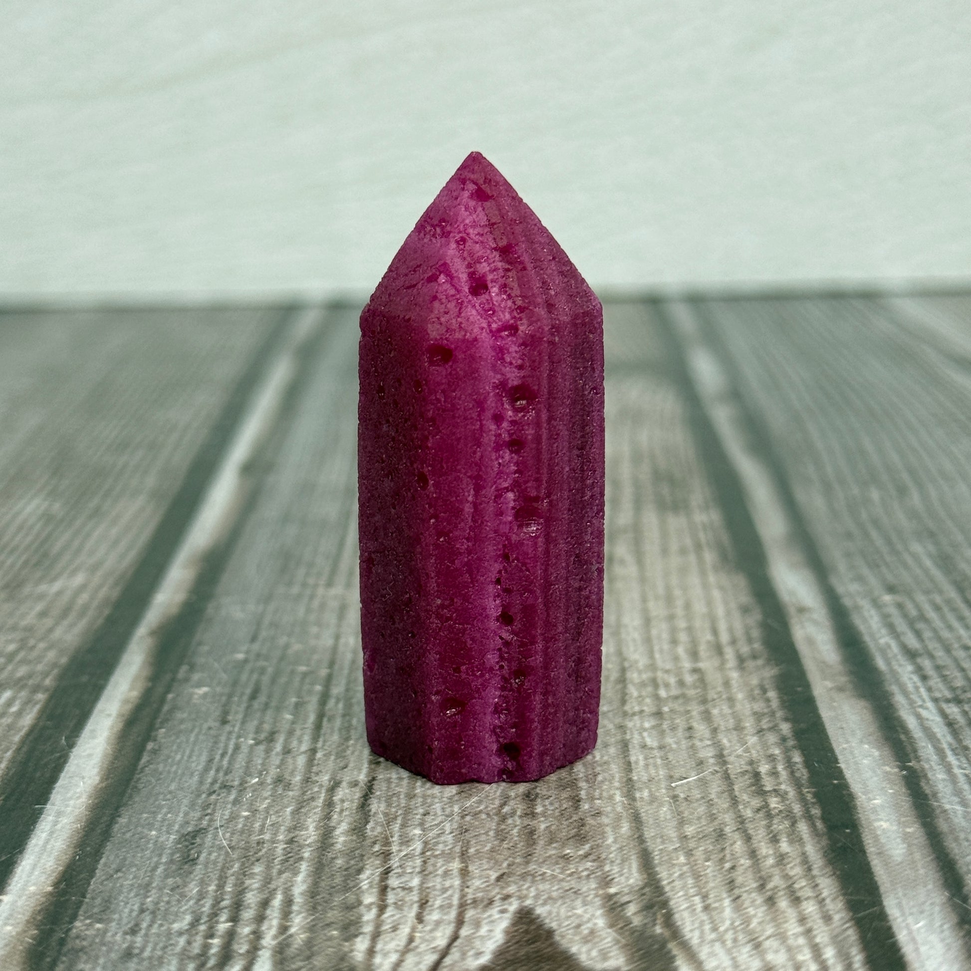 Natural ruby tower with eye catching features.
