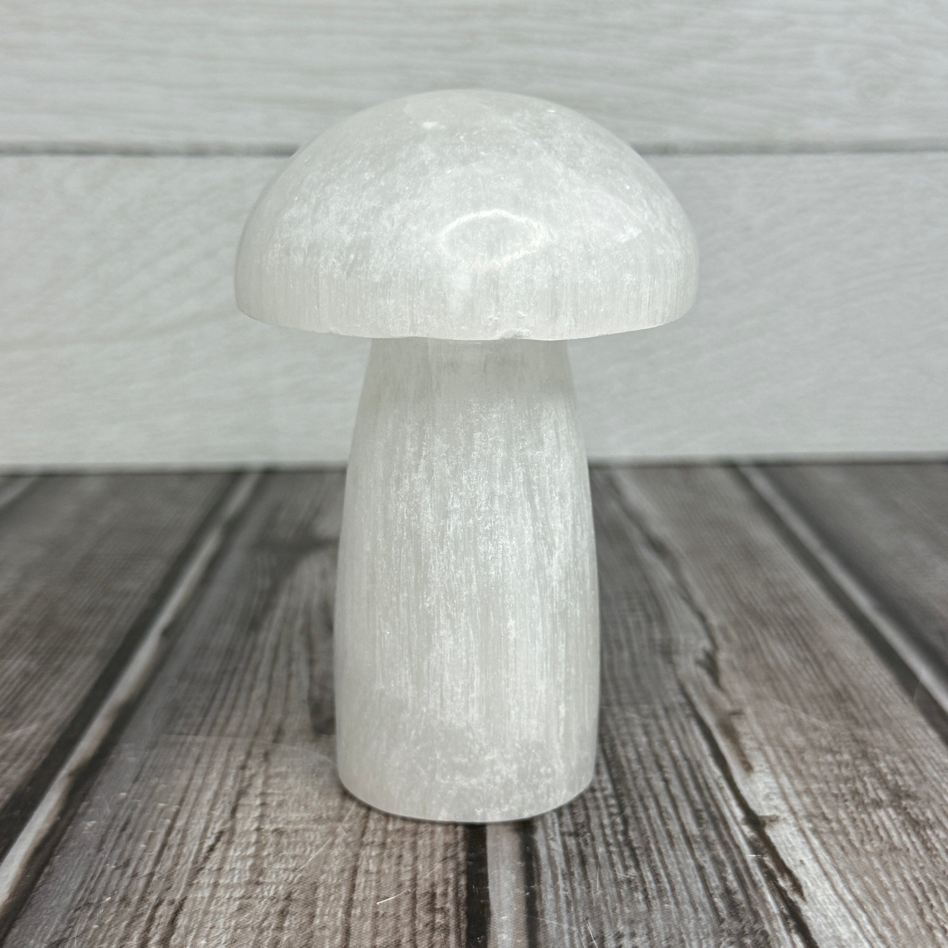 The Selenite Mushroom symbolizes purity and spiritual illumination, making it a powerful tool for enhancing mental clarity and emotional tranquility. Its delicate, luminous structure encourages connection to higher realms, assisting in meditation and fostering a peaceful, balanced state of mind. This unique form also promotes protection and cleansing of negative energies, supporting personal growth and a deeper sense of harmony.
