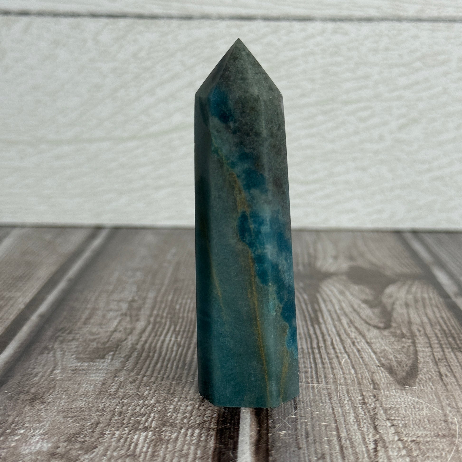 Trolleite is a rare blue-green phosphate mineral traditionally associated with spiritual awakening and enhanced intuition. This tower form amplifies the stone's energetic properties, directing its vibrations upward to support third eye activation and inner vision. Collectors value trolleite for its scarcity and believed ability to facilitate deep meditation and connection to higher consciousness. An exceptional piece for those drawn to rare minerals with metaphysical significance.